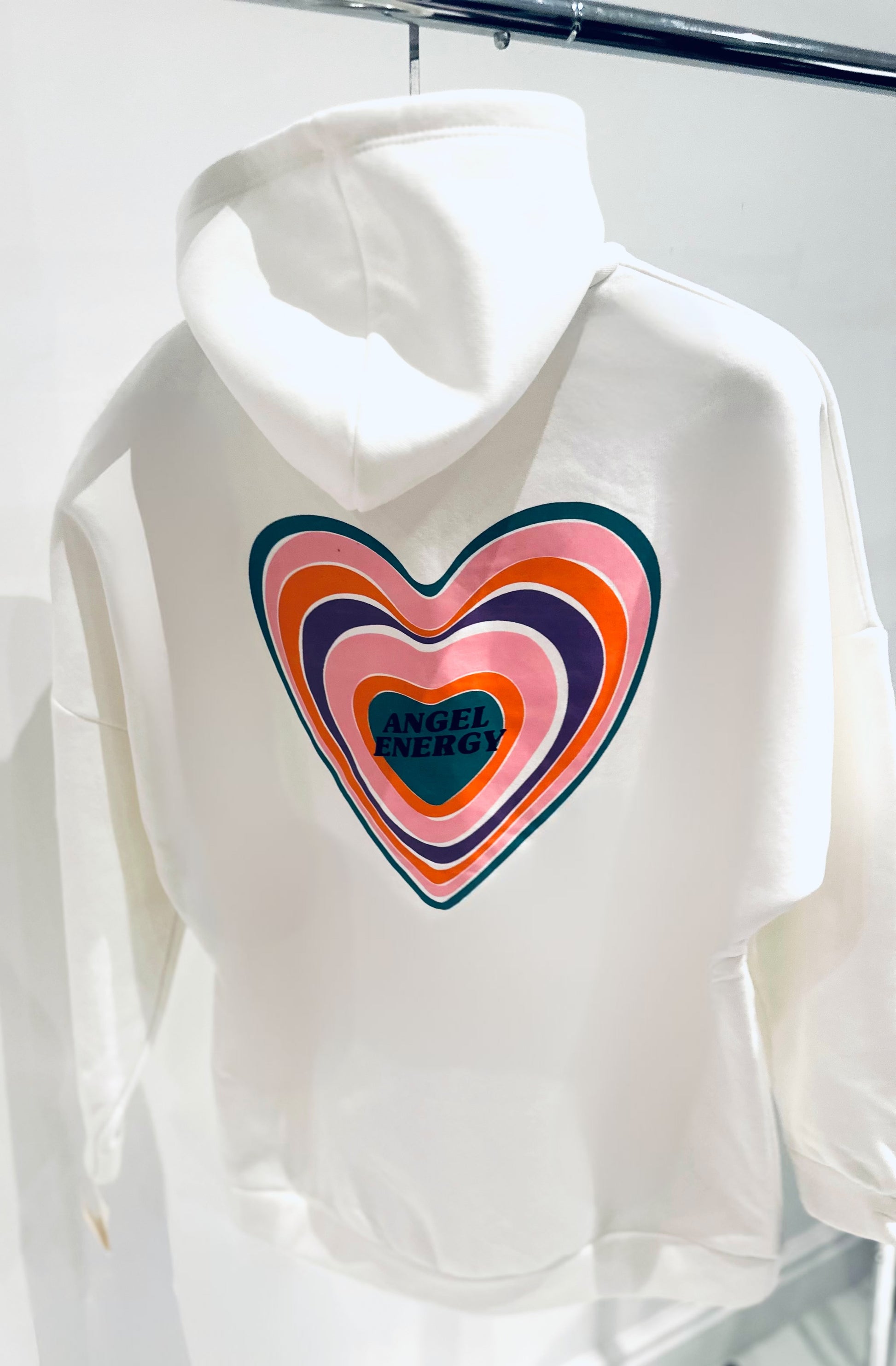 A feel-good hoodie designed for everyday comfort with a stylish edge. Featuring a soft-touch fabric, relaxed fit and hooded design, finished with a statement heart graphic and “Angel Energy” slogan for a playful pop of colour. Perfect for effortless off-duty styling while staying cosy and on trend.