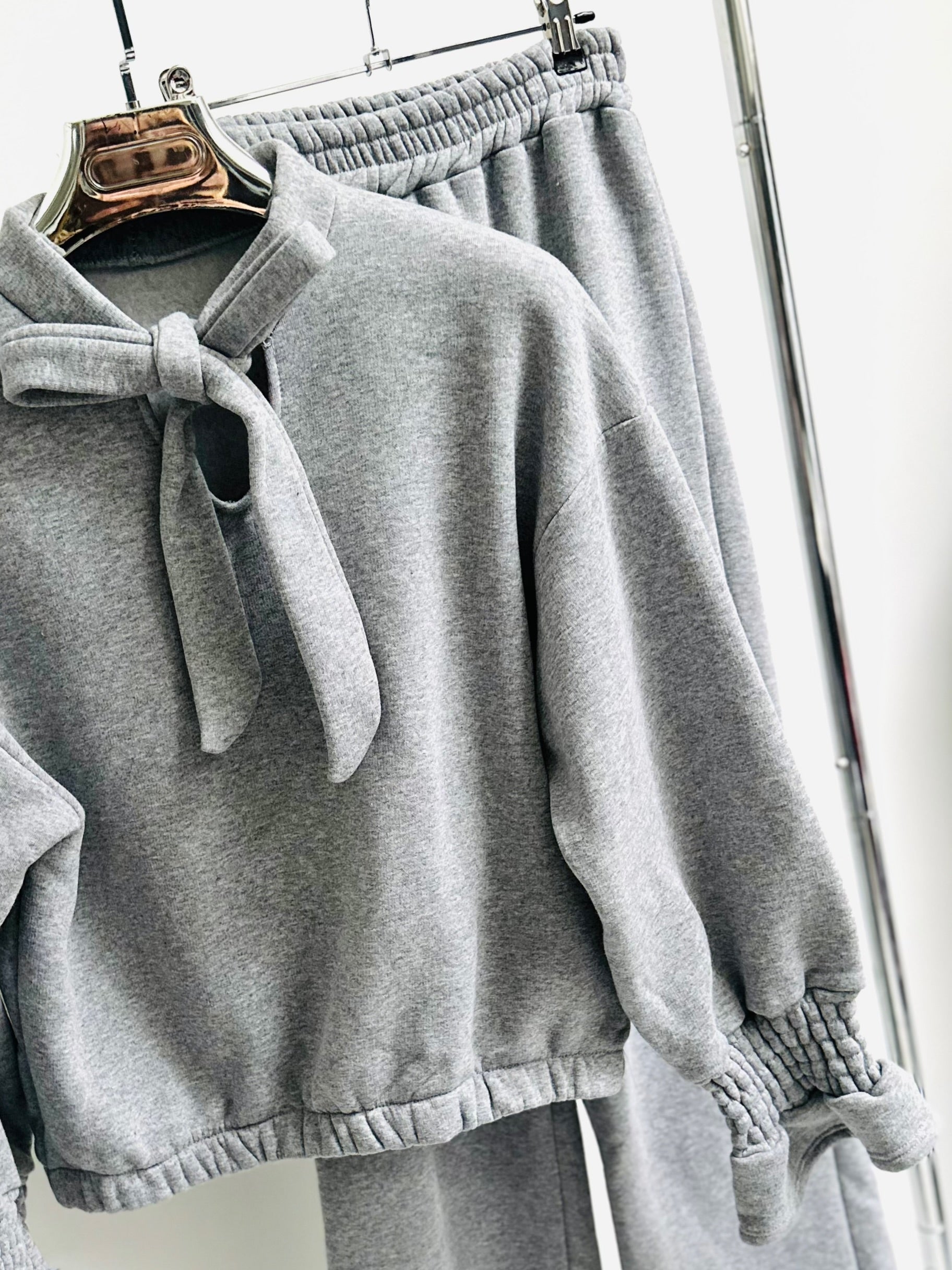 FRANCISCA Grey Tie Neck Detail Top & Pants Co-Ord