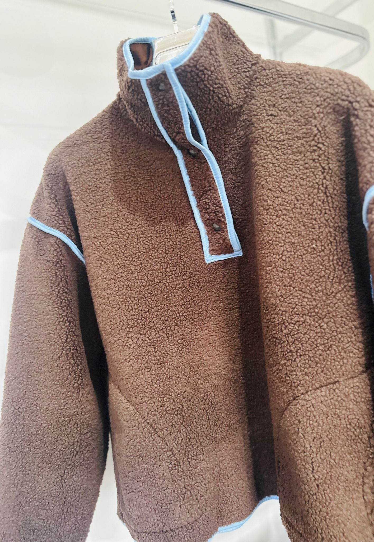 The perfect blend of cosy and effortless style. Designed in a soft teddy fleece with contrast trim detailing and a half-button neckline, it offers a relaxed fit that’s ideal for everyday wear. Finished with handy side pockets, it’s perfect for layering on cooler days while still looking put together. Pair with jeans or leggings for an easy, off-duty look.