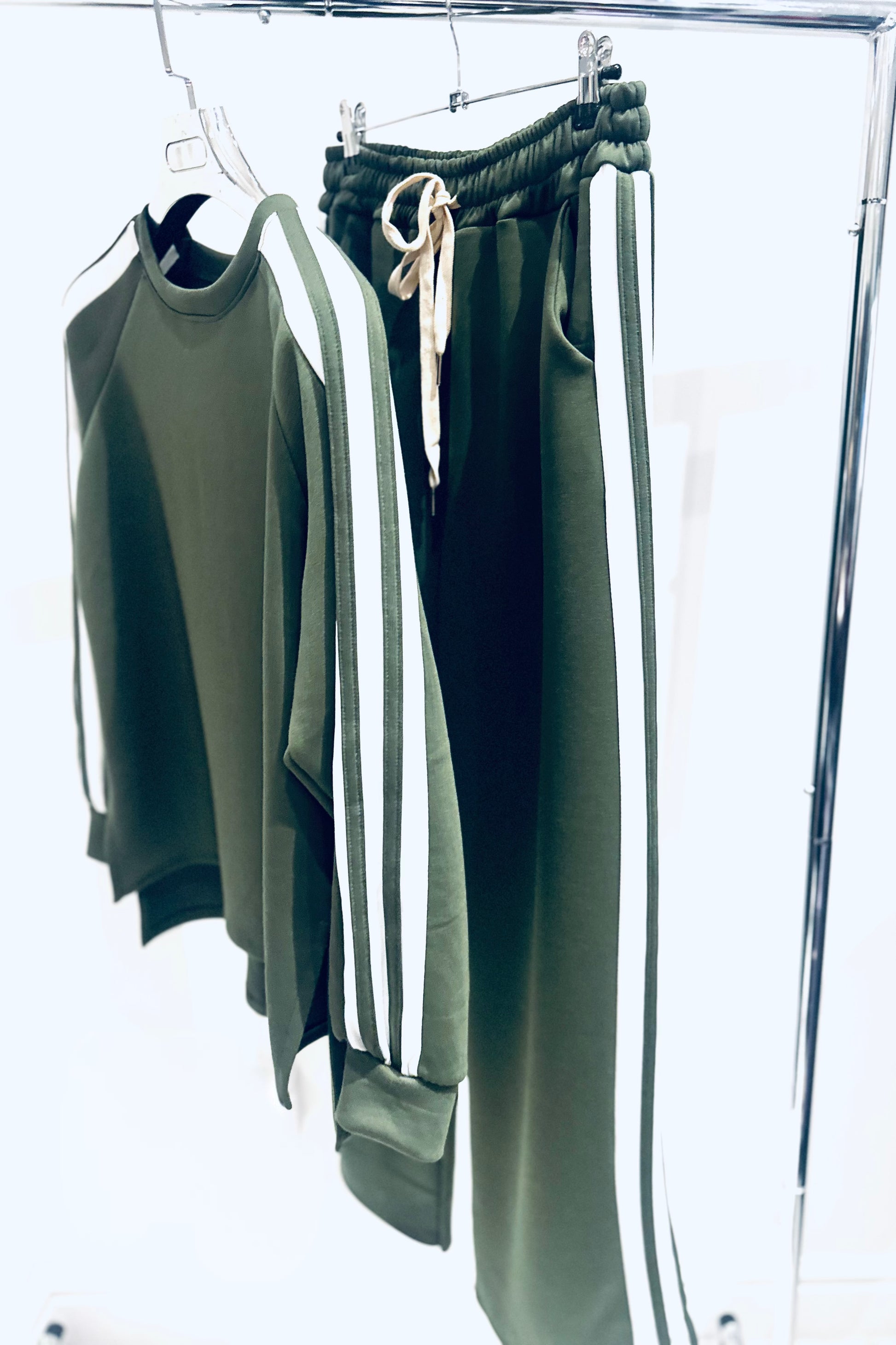 The ultimate blend of comfort and everyday style. Featuring a soft, relaxed-fit sweatshirt with contrast stripe sleeve detailing, paired with matching wide-leg joggers with an elasticated waistband and drawstring for all-day comfort. Perfect for off-duty days, school runs or lounging in style, this easy co-ord can be worn together or styled separately for a versatile, laid-back look.
