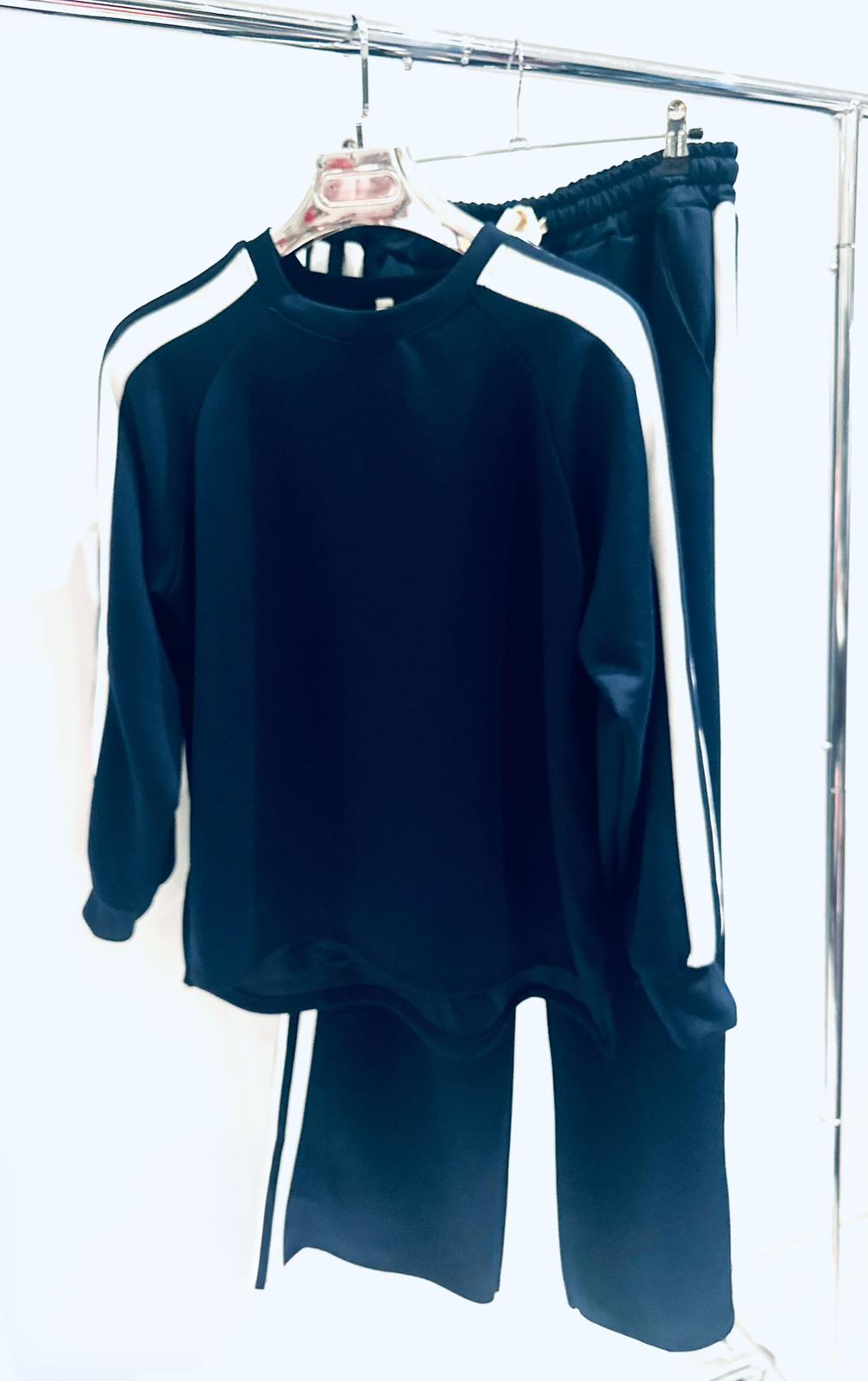 The ultimate blend of comfort and everyday style. Featuring a soft, relaxed-fit sweatshirt with contrast stripe sleeve detailing, paired with matching wide-leg joggers with an elasticated waistband and drawstring for all-day comfort. Perfect for off-duty days, school runs or lounging in style, this easy co-ord can be worn together or styled separately for a versatile, laid-back look.
